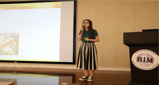 项目高级实施经理孙杰先生以“建筑信息化——BIM技术在工程建设中的应用”为题进行课题宣讲,介绍了广联达的一项重要技术–BIM5D,向参会同学宣讲施工建造,通过视频展示模拟施工建造过程,对所讲内容进行进一步的阐述。随后高级讲师简劲偲女士对大家进行了工程计价基础知识的宣讲,让参会同学对工程计价相关知识有了进一步的了解和认识。讲座中,广联达公司相关负责人不时提出专业相关问题,参会同学踊跃发言,积极抢答,现场氛围十分活跃。