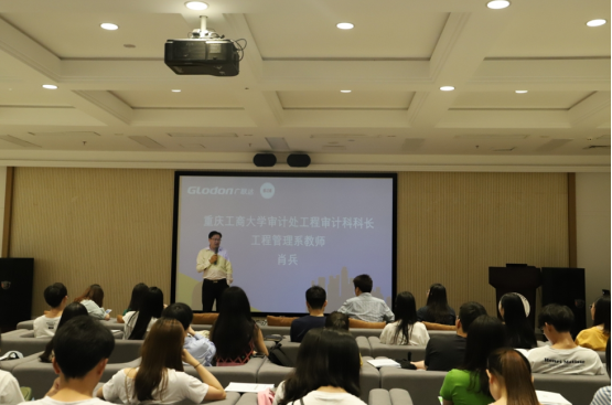 会议伊始,肖兵老师致欢迎词,对广联达科技股份有限公司重庆分公司相关负责人的到来表示了热烈欢迎,并预祝活动取得圆满成功。随后HR–BP王艳玲女士进行课题宣讲——认识数字建筑,提到2017年广联达正式提出“数字建筑”理念,指出通过数字建筑驱动建筑产品全过程、全要素、全参与方的升级,建立全新的生产关系,让参会同学对数字建筑有了更加深入了解。
