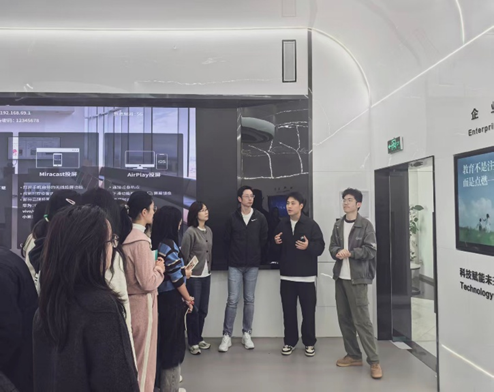 (工作人员介绍公司主要部门) (师生参观学术交流沙龙举办地)
