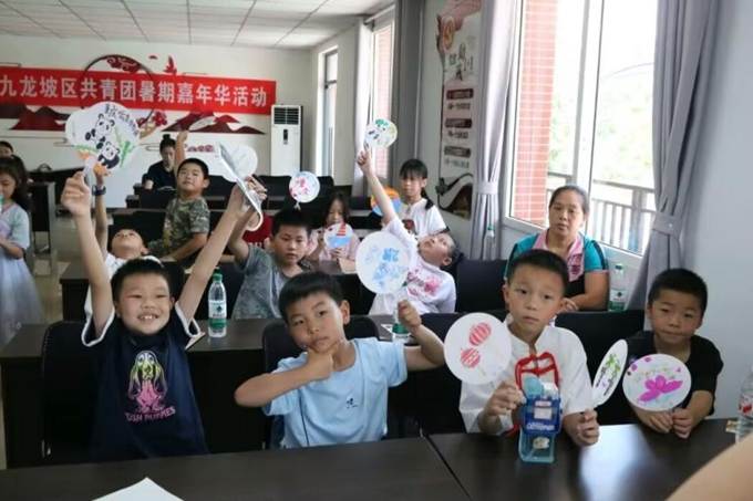 上午,活动以地域文化认知为主线展开。活动伊始,研行团成员首先引领青少年步入“九龙文脉”的探索之旅。在简单的景点介绍后,“九龙景点知多少”知识抢答赛激起了青少年的热情。他们紧盯屏幕上展示的图片,在紧张激烈的抢答中辨认家乡景点,稚嫩而响亮的声音此起彼伏。随后的“九龙景点蹲蹲乐”互动游戏中各组代表化身“景点代言人”,在节奏明快的口令下敏捷反应,完成蹲起接力。在这充满律动的趣味游戏中,家乡印象深深镌刻在青少年的记忆里。“巧手绘家乡”手工环节,青少年手持空白扇子,发挥天马行空的想象力,运用多彩画笔和模具,描绘出心中美丽的九龙坡风光,一把把扇子摇身一变成为承载童真视角的“家乡名片”。