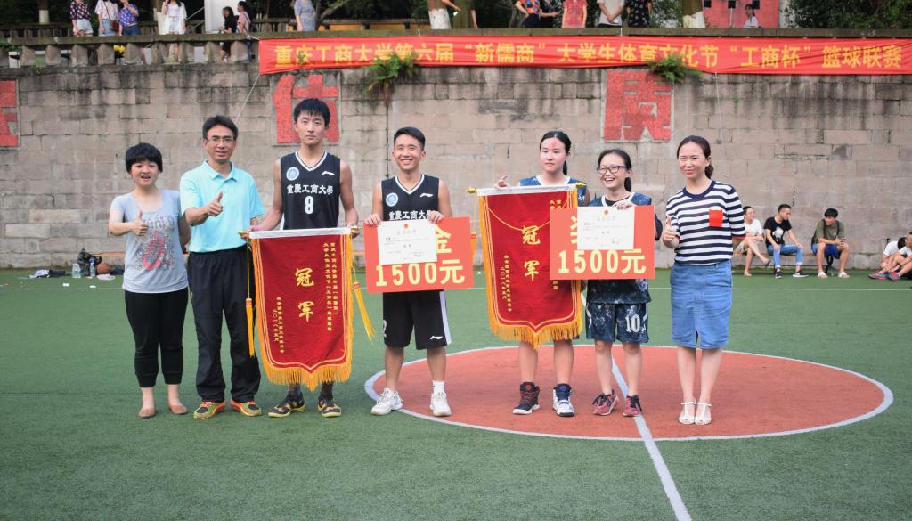 比赛的最后举办了隆重的颁奖仪式及闭幕式,由体育学院范文杰副院长为管理学院球员张航颁发“最有价值球员奖”,校团委杨娟副书记和范院长一起为管理学院颁发男子团体冠军锦旗、奖状。至此,太阳集团2138第六届“新儒商”大学生体育文化节“工商杯”篮球联赛圆满结束。
