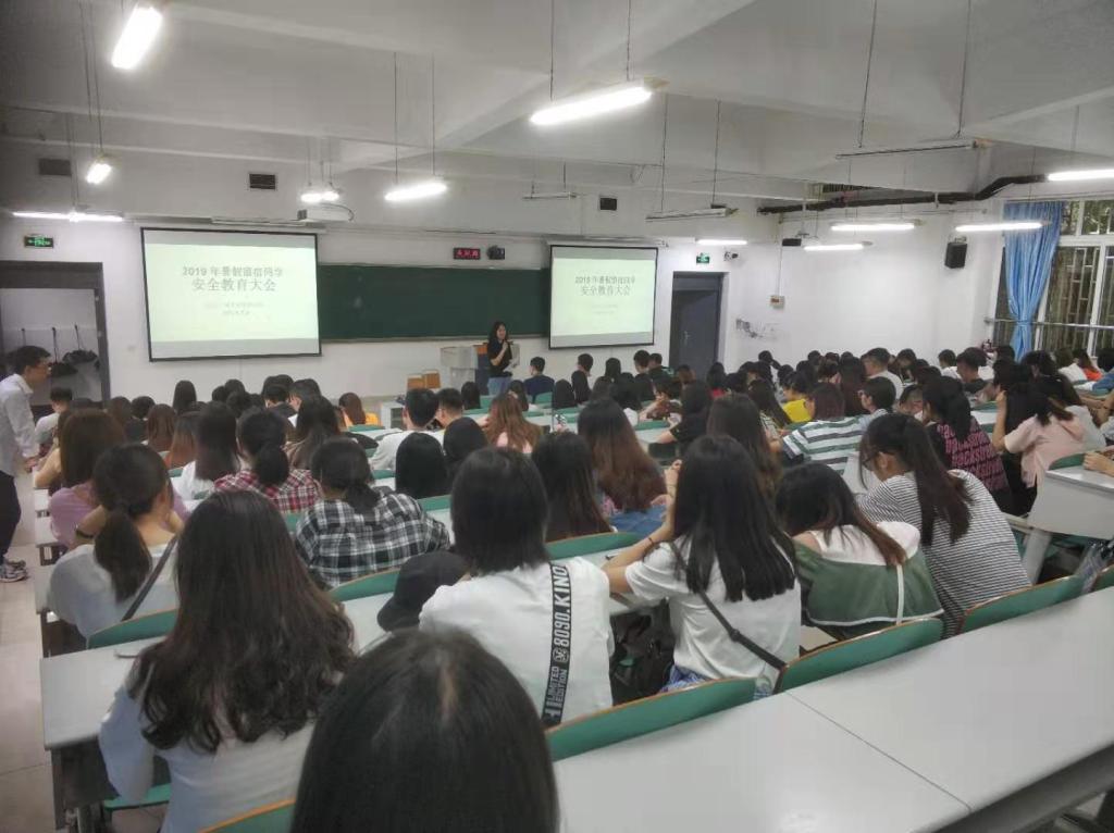 2019年7月8日下午,为了让管理学院暑假留宿的同学们树立良好的安全意识,管理学院分党委副书记王静带领学院全体辅导员以集中教育方式在博智楼7122教室对暑假留宿的200余名学生开展暑期留宿学生安全教育大会。