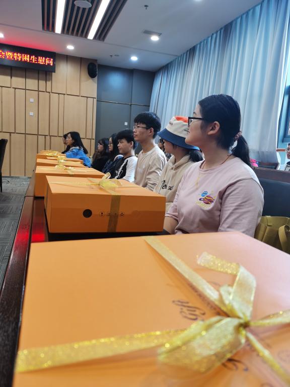 会议最后,学院领导和辅导员老师为在座同学送上了慰问品,在这个稍显寒意的初秋时节,将学院的关爱送到了同学们的心中。