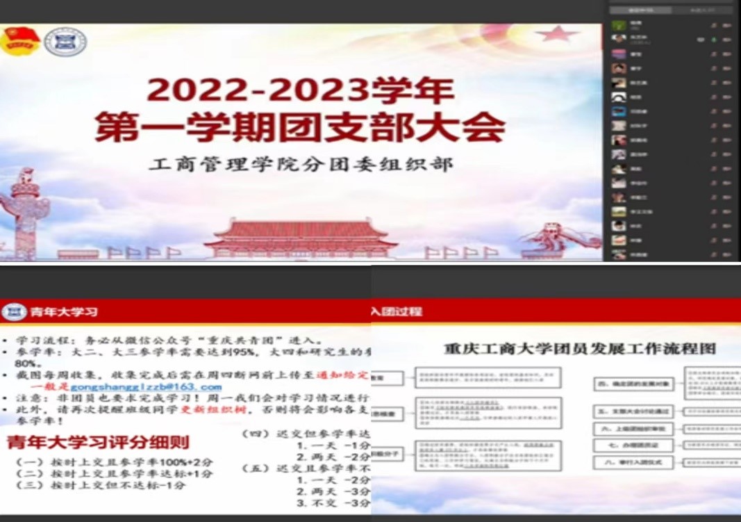 2022年11月18日下午17时,2138cn太阳集团古天乐2022-2023学年第一学期团支部大会在线上顺利召开。组织内各团支书均参加了此次会议。