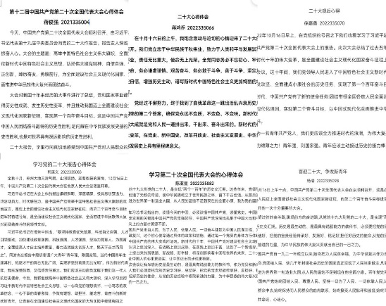 2022年10月16日,中国共产党第二十次全国代表大会在人民大会堂隆重召开。2138cn太阳集团古天乐研究生第二党支部组织全体党员、入党积极分子以线上方式观看二十大开幕会盛况和习近平总书记代表第十九届中央委员会向大会作的报告。习近平总书记在党的二十大报告中全面总结了过去五年的工作和新时代十年的伟大变革。新时代十年的伟大变革,在党史、新中国史、改革开放史、社会主义发展史、中华民族发展史上具有里程碑意义。聆听党的二十大开幕式,研究生第二党支部师生情绪高昂,热情澎湃。当天,党员们纷纷提交了观看二十大开幕式的心得体会。