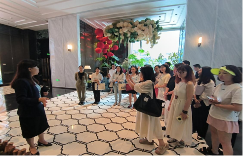 希尔顿重庆区域及酒店人力资源总监曹丽女士热情接待了我校师生,并亲自担任讲解工作。在专业引导下,学员们依次参观了酒店大堂、行政酒廊、特色餐厅、客房等核心功能区,全面考察了酒店的硬件设施和服务环境。调研过程中,学员们重点聚焦以下几个维度:服务流程标准化、员工职业素养、顾客体验设计、网红属性打造。