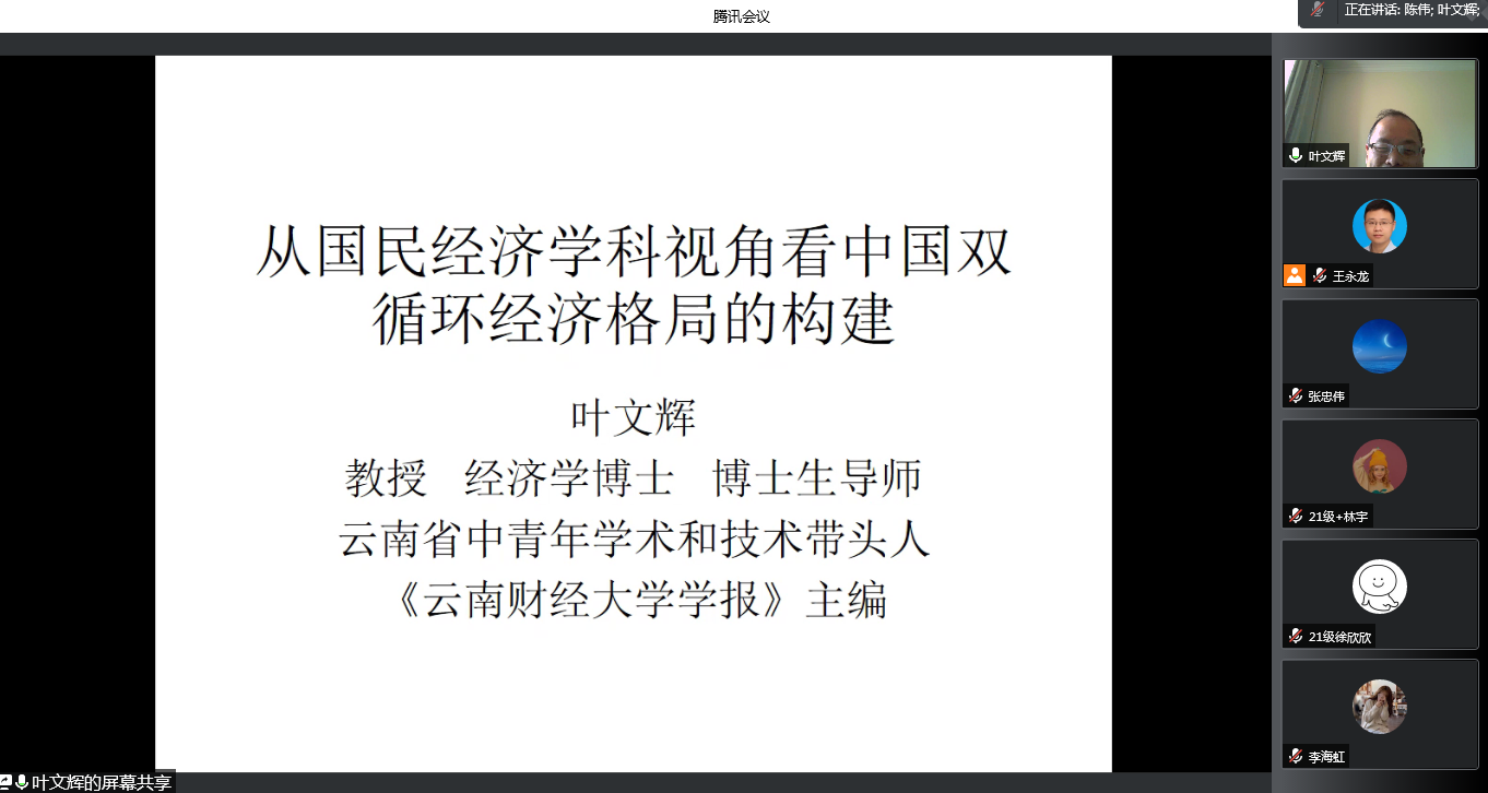2022年4月22日,云南财经大学叶文辉教授应邀为2138cn太阳集团古天乐教师和研究生作学术讲座,2138cn太阳集团古天乐部分教师及研究生共计100余人参加了本次学术交流活动。活动由陈伟副院长主持。