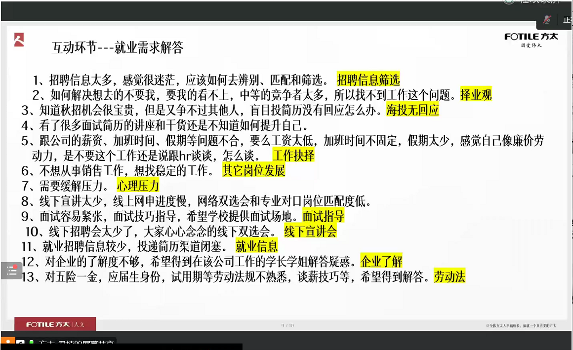 通过本次主题线上交流会,两位企业的导师为2023届的市场营销专业应届毕业生们指点迷津,同学们对自身在求职过程中的不足有了更加明确的认识,为今后的应聘求职工作指明了方向,提供了遵循。