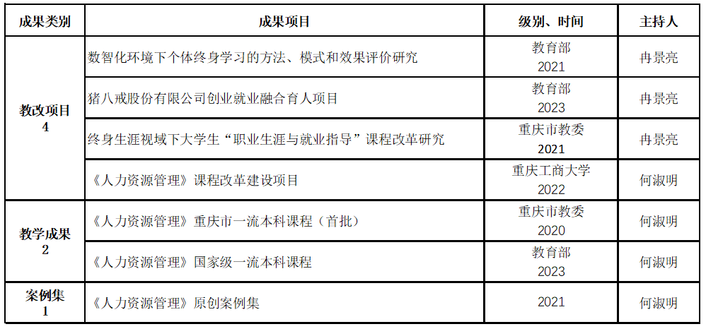 本课程开设于2001年,是学校工商管理专业(国家级“一流”专业建设点)和人力资源管理专业(重庆市“三特”专业)重点建设的专业课程。