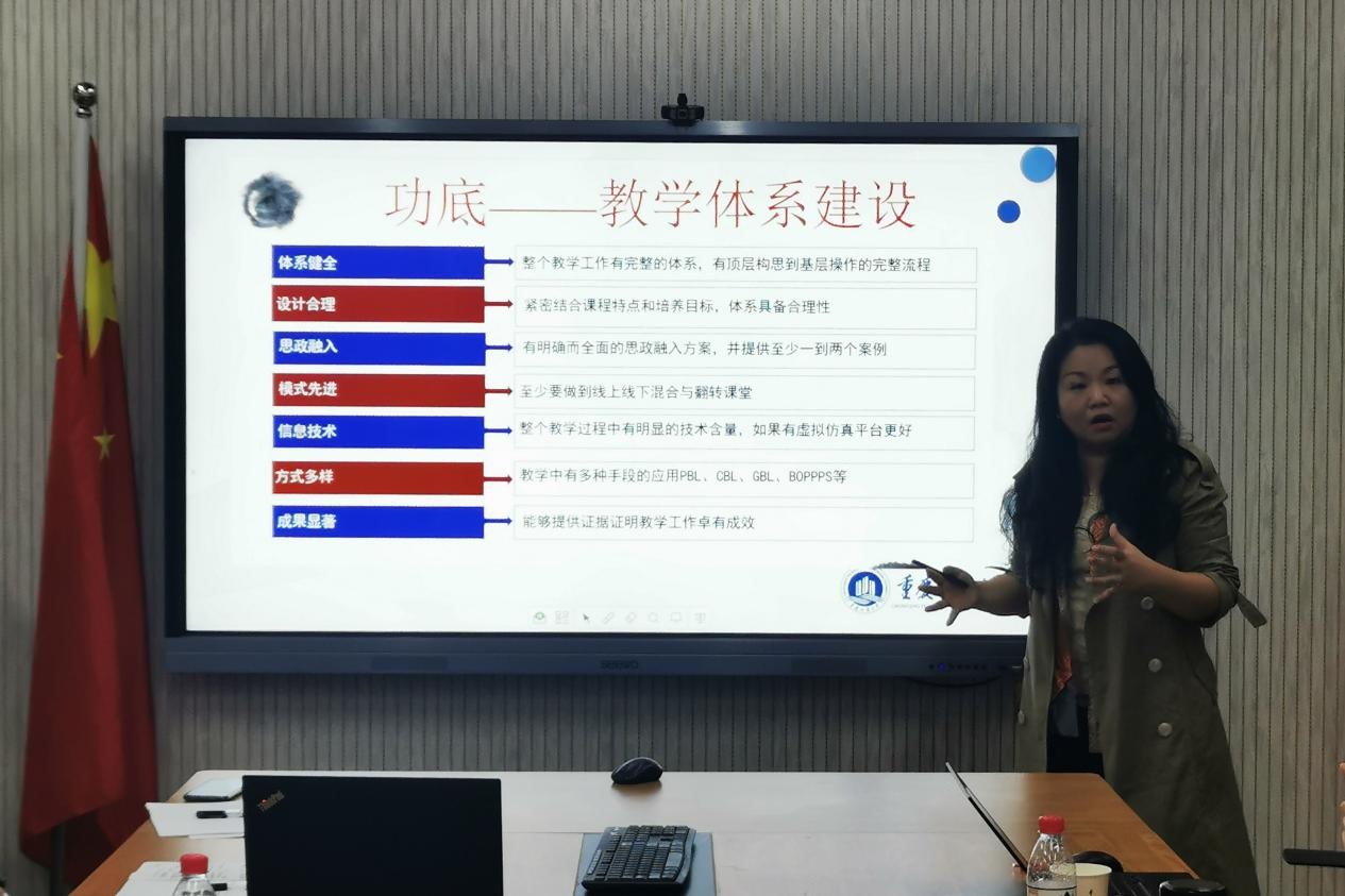 两位嘉宾老师师德师风优良,教学经验丰富,在教学设计、课堂教学组织、教学过程掌控、教学模式探索等方面积淀深厚,并在参加市级、校级教学创新大赛和教学技能大赛、教学成果奖评比等活动中取得了优异的成绩。培训会上,曹策俊老师分别从课堂教学、教学竞赛、教学成果三方面分享了教学心得,其中重点对“5W1H”框架下发如何做好课前环节的准备、课中环节的教学效果提升、课后环节的教学反馈以及教学原则等进行了方法和经验介绍。此外,曹老师还对两大教学比赛的竞赛板块和比赛规则进行了详细的介绍,并分享了个人参赛经验。李琴老师则以其丰富的教学经验,畅谈了她对如何上好一门课的体会。李老师结合自身教学实践和教学感受的讲解让受训老师深刻理解了如何在教学目标、教学大纲、教案设计、教学评价等方面如何进行系统化思考;同时,李老师还分享了参加教学创新大赛过程中的心路历程和奋斗经历,这也让受训教师深受启发。